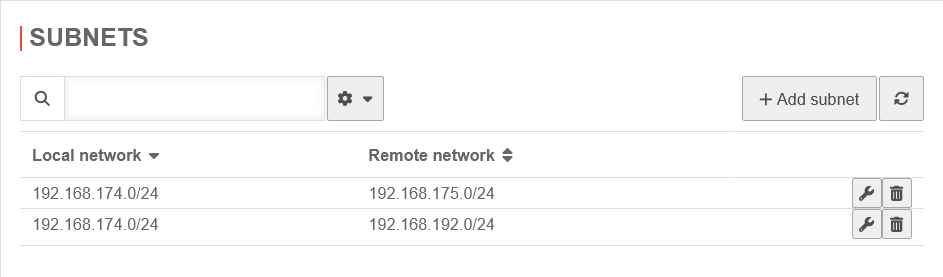 Configuration under Button Phase 2 of the connection used, tab Subnets, button AddIPSec Connection