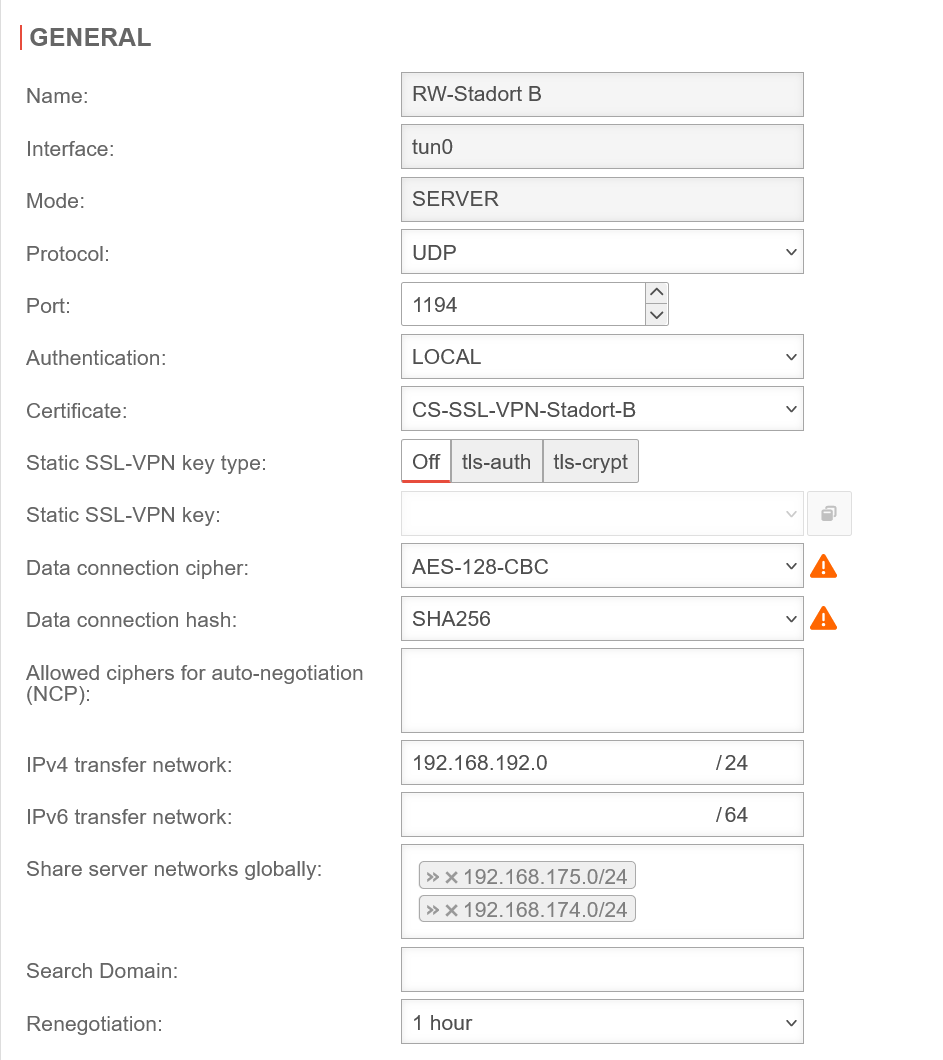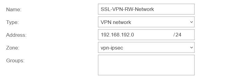 Important: The SSL VPN connection does not realize that this is another VPN connection. Therefore, no VPN network should be selected here!