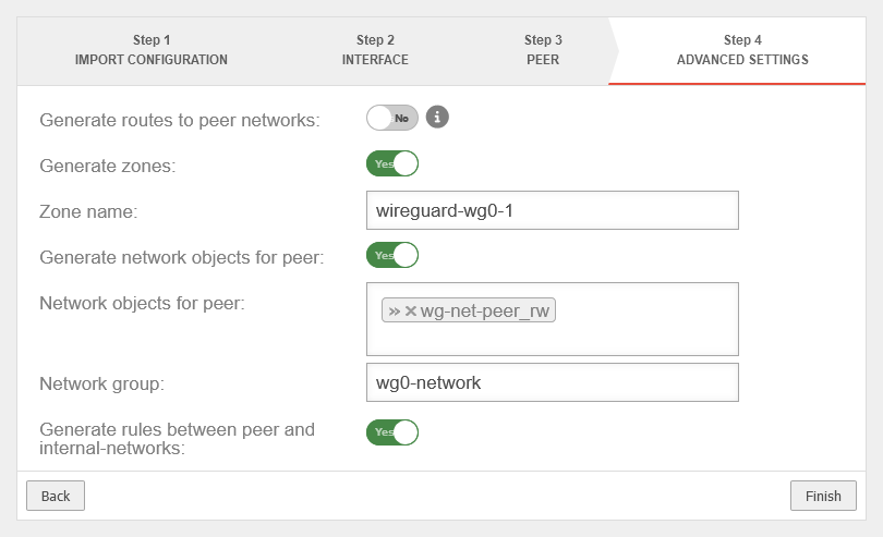| Generate network objects for peer: | Yes »wg-net-peer_rw»wg-net6-peer_rw |