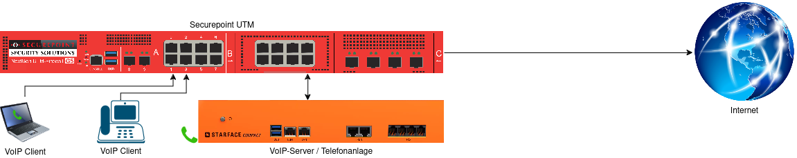 Beispielszenario 4: Telefonanlage in einem eigenen Netz an der UTM / direkter Internetzugang